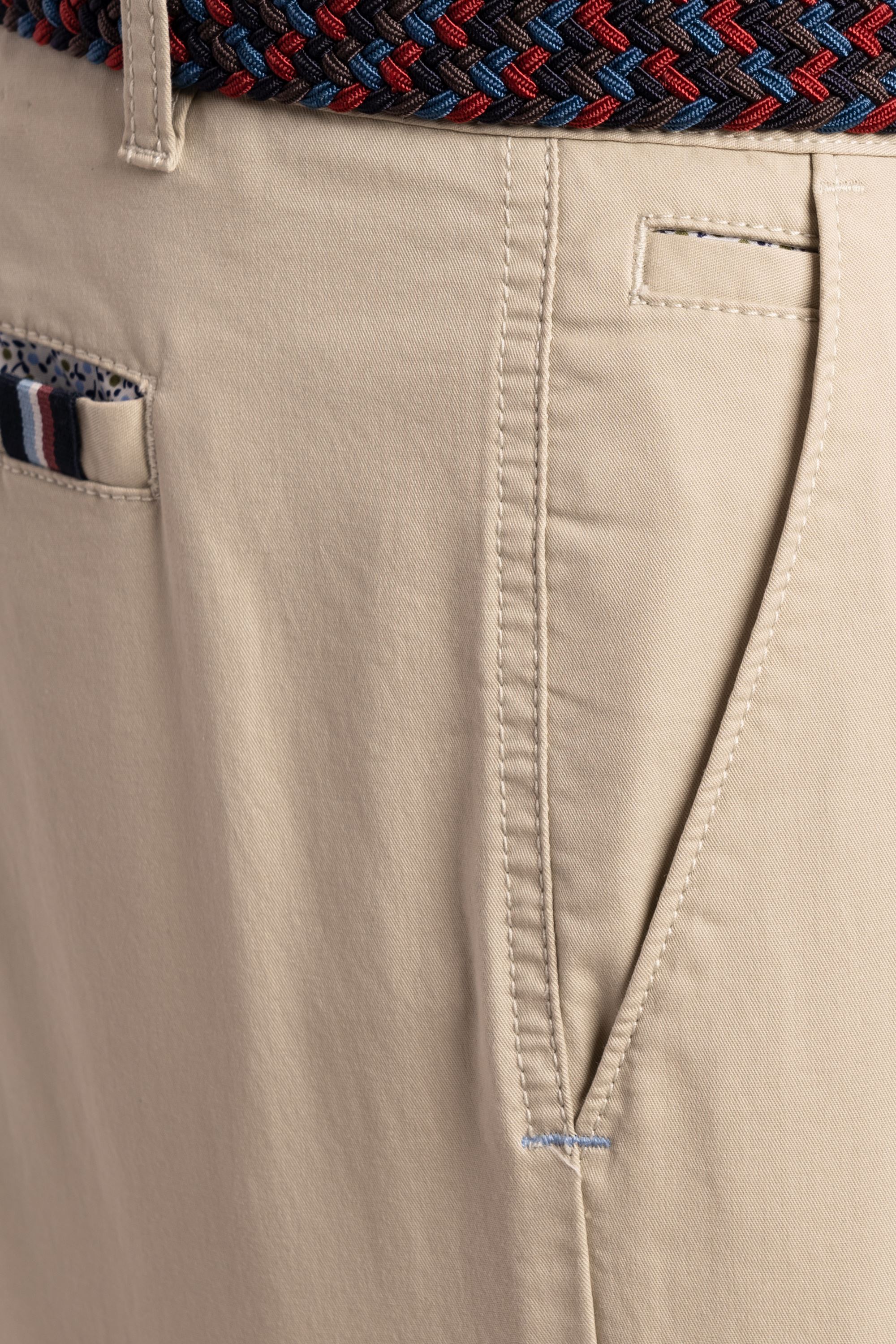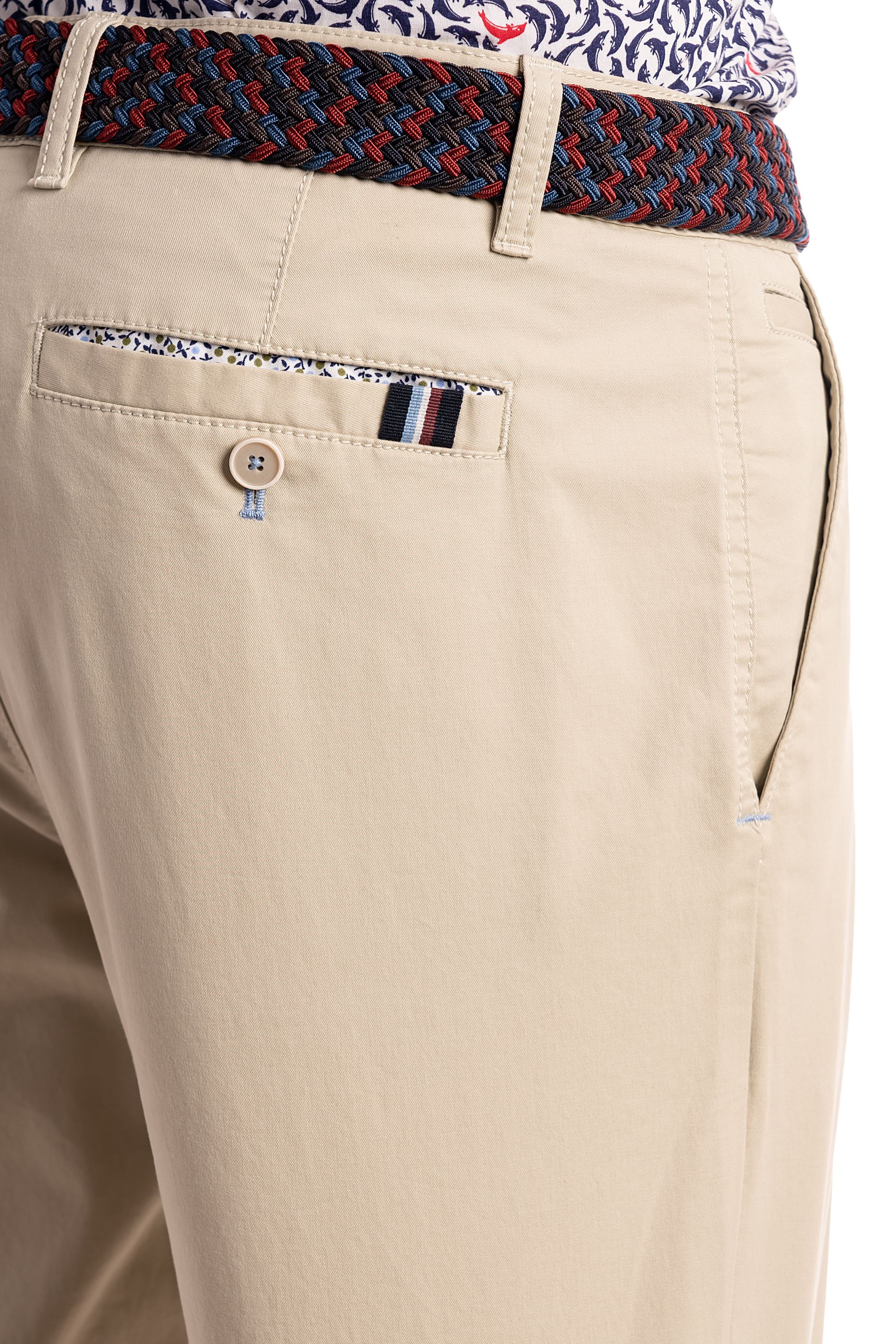 The light stone tone provides an easy base for spring and summer styling, pairing effortlessly with navy blazers, pastel shirts or bold patterned prints. Subtle detailing at the back pocket adds character without disrupting the clean finish.