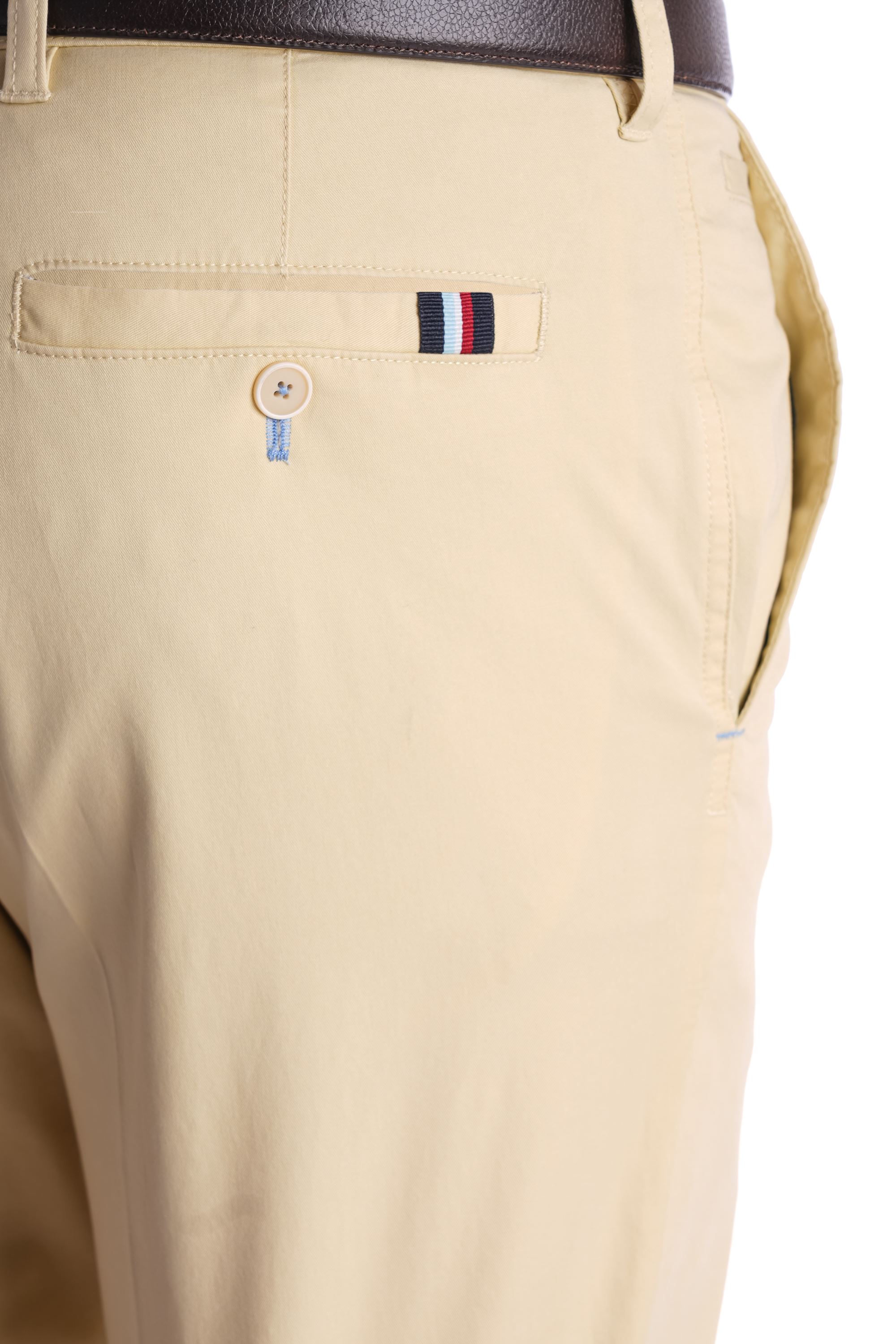 The soft lemon tone adds brightness without overpowering your outfit. It pairs effortlessly with navy, sky blue or patterned shirts, making it a strong choice for spring and summer smart-casual dressing. Subtle detailing at the back pocket adds interest while keeping the overall look refined.
