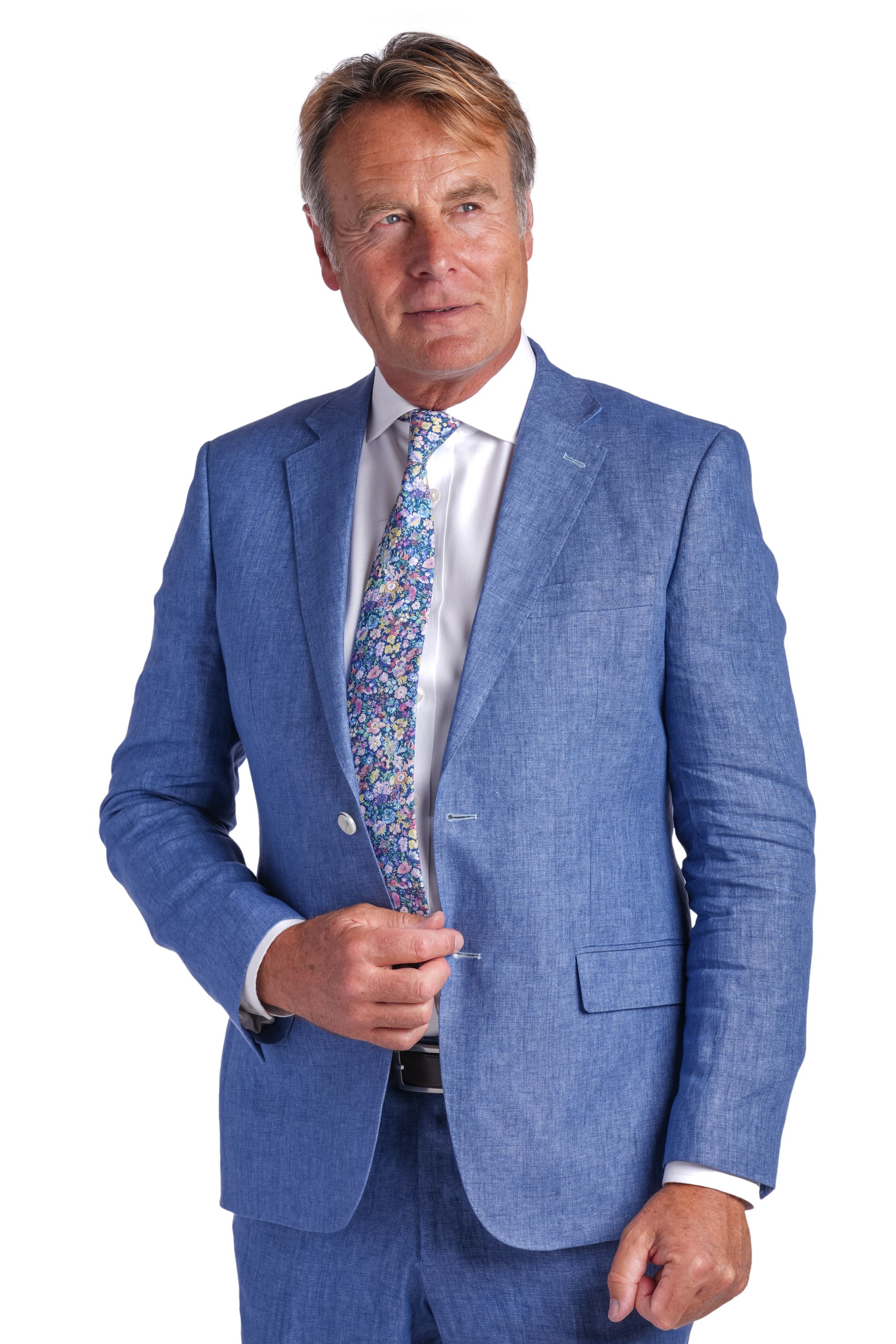 Pair this blue men’s blazer with a crisp white shirt for a classic look, or add a patterned tie to bring more personality. For a more relaxed approach, wear it with chinos and keep the rest of the outfit simple. The clear blue tone makes it easy to style while still standing out.