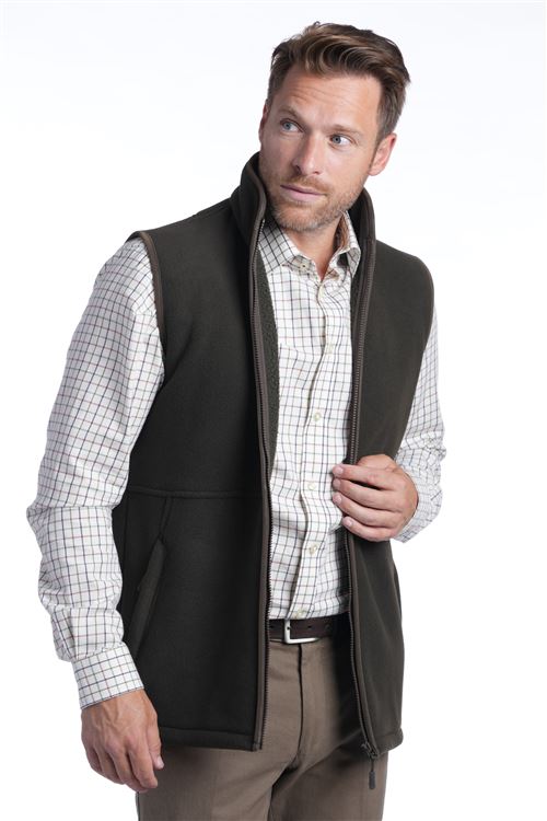 Looking to keep the chill at bay while staying stylish this season? Our men’s fleece gilet with its high stand collar is your new best friend. It's perfect for layering and pairs effortlessly with our corduroy trousers and a classic check shirt. Feeling extra frosty? Throw on our tweed coat for that added warmth and unbeatable charm. So go ahead, make a statement and conquer the cold in style with our men's olive fleece gilet!