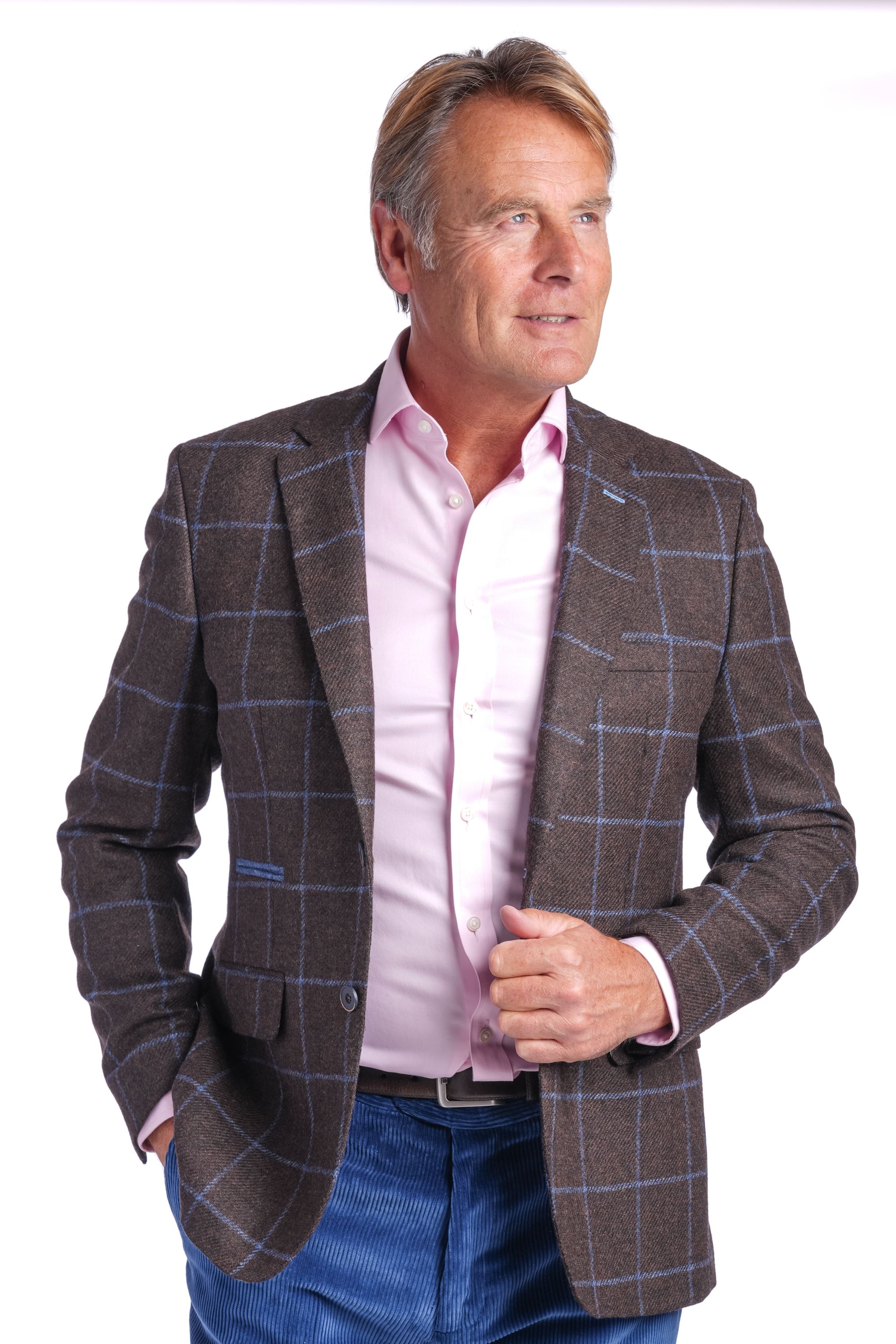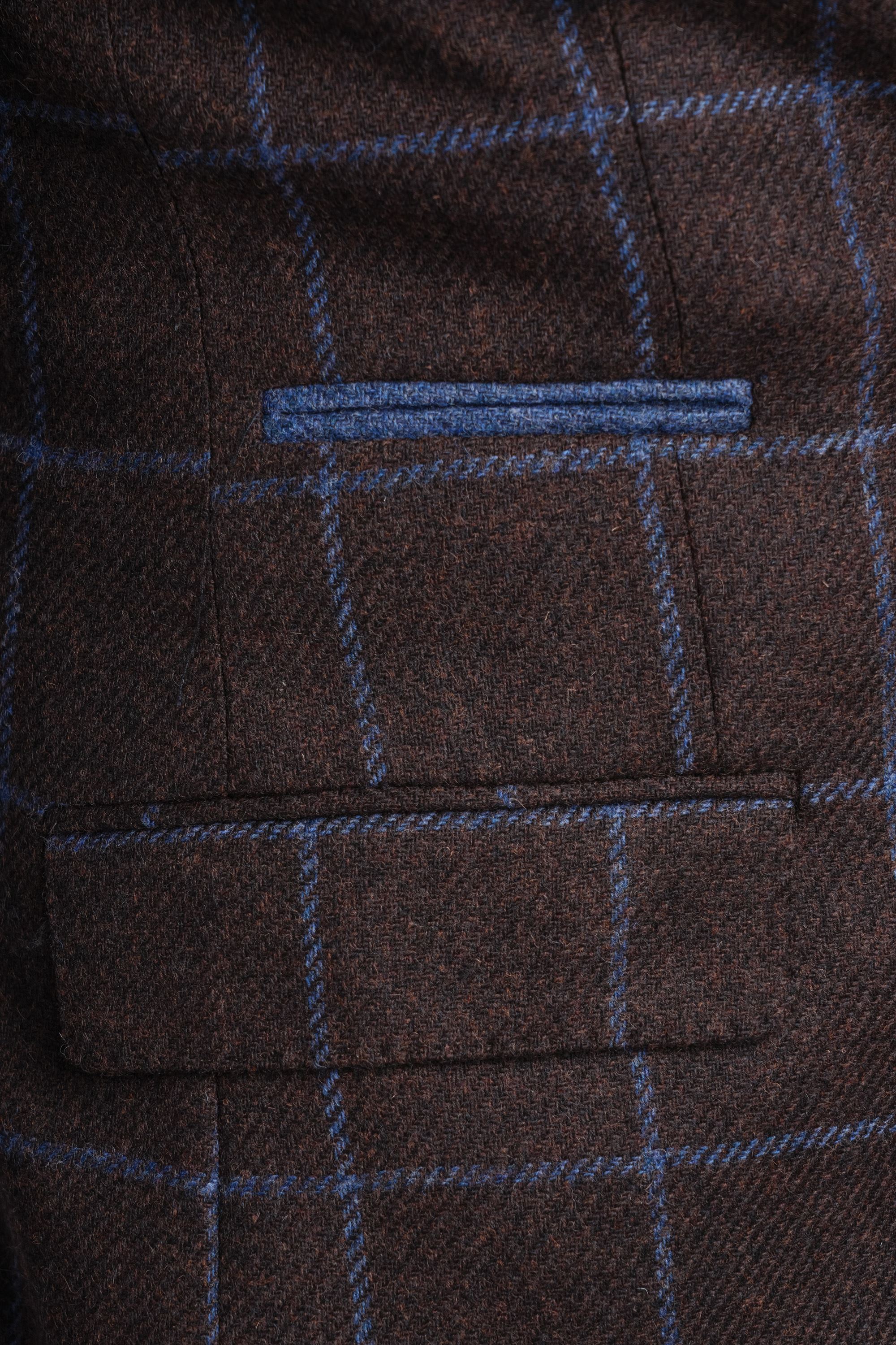 The chestnut shade with check detailing adds richness and individuality. This jacket pairs easily with checked shirts for casual settings, or with formal trousers and polished shoes for professional occasions. Its earthy tone makes it particularly effective in autumn and winter wardrobes.
